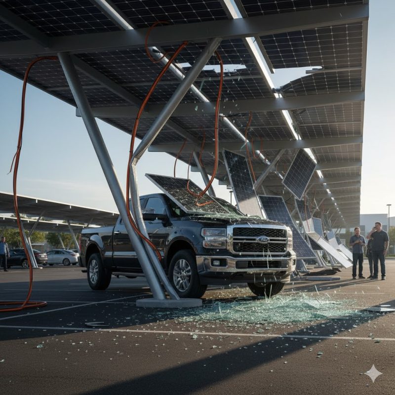Caminar por un estacionamiento cubierto por paneles solares se siente como dar un paso hacia el futuro. Es la solución perfecta en el papel: proteges los vehículos del sol, generas energía limpia y aprovechas un espacio que antes estaba muerto. Sin embargo, detrás de esa estética minimalista de acero y vidrio se esconde una debilidad estructural que muchos prefieren ignorar: la absoluta falta de resistencia ante el error humano.